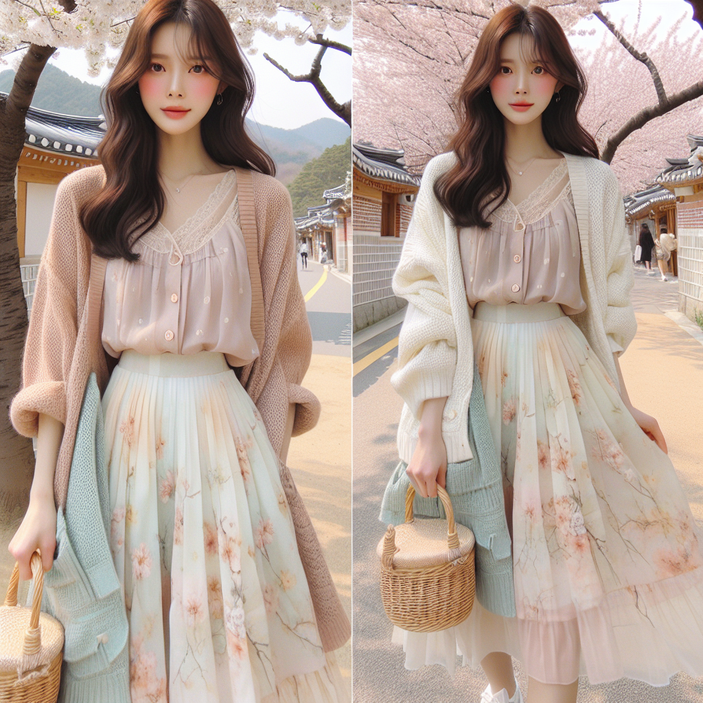 イエベ春の方にぴったりな韓国ナチュラルガーリーコーデを楽しむために、柔らかいカーディガンを使ったレイヤードスタイルがおすすめです。春の訪れと共に、軽やかな装いが恋しくなりますよね。そんな時期にぴったりなのが、カーディガンを使ったコーディネートです。
